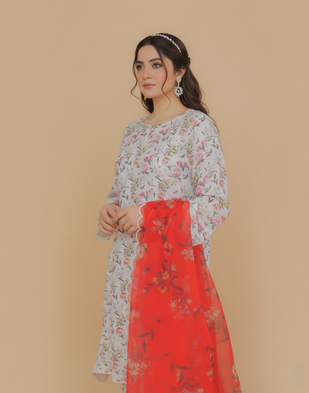 AC-02 White Printed Airjet Viscous Silk 3PC