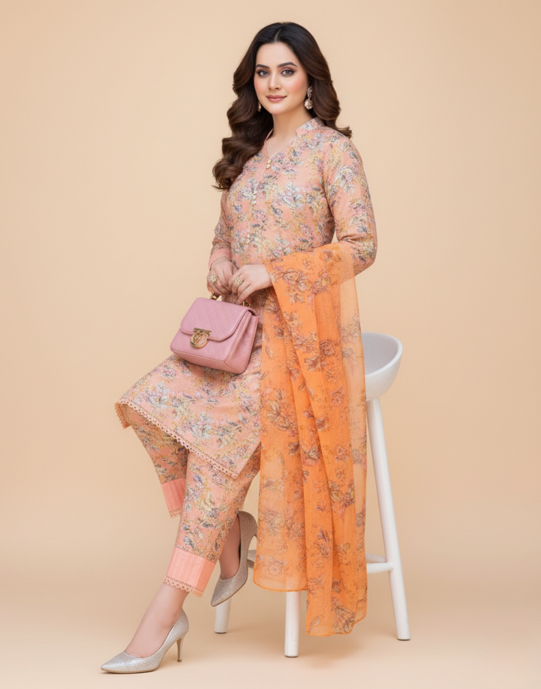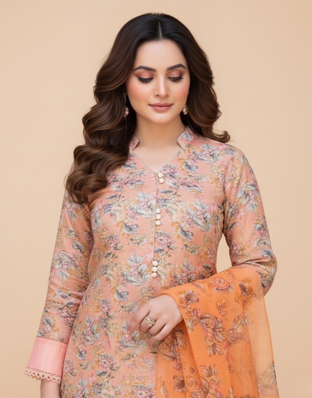 AC-03 Peach Printed Airjet Viscous Silk 3pc Wt