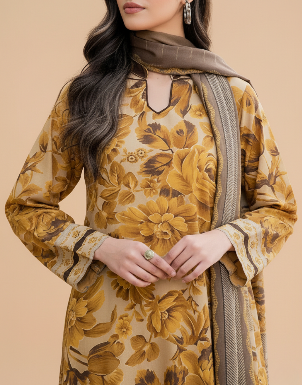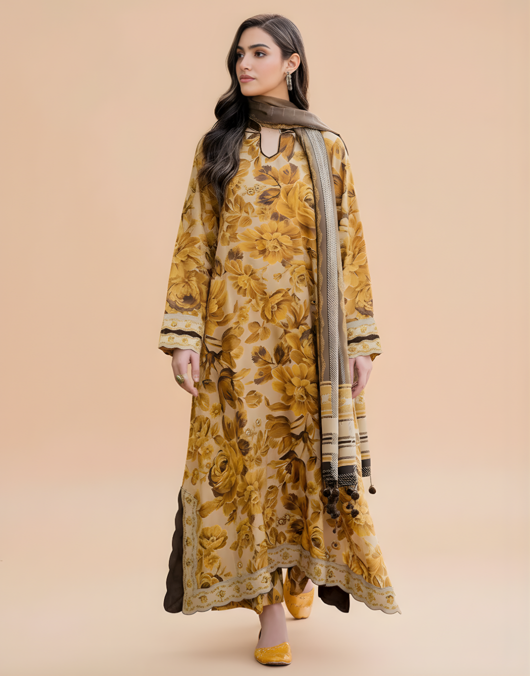 Baroque Mustard D-792 Printed Lawn 3PC