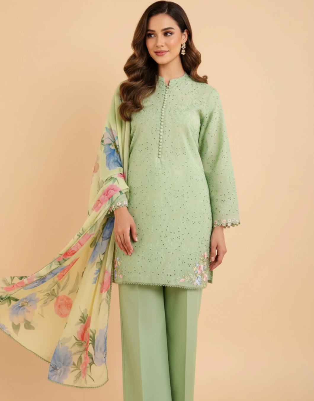 - Chikenkari Embroidered lawn sleeves