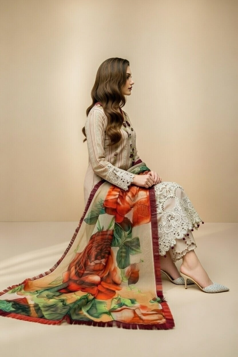 Embroidered lawn Three Piece D-267