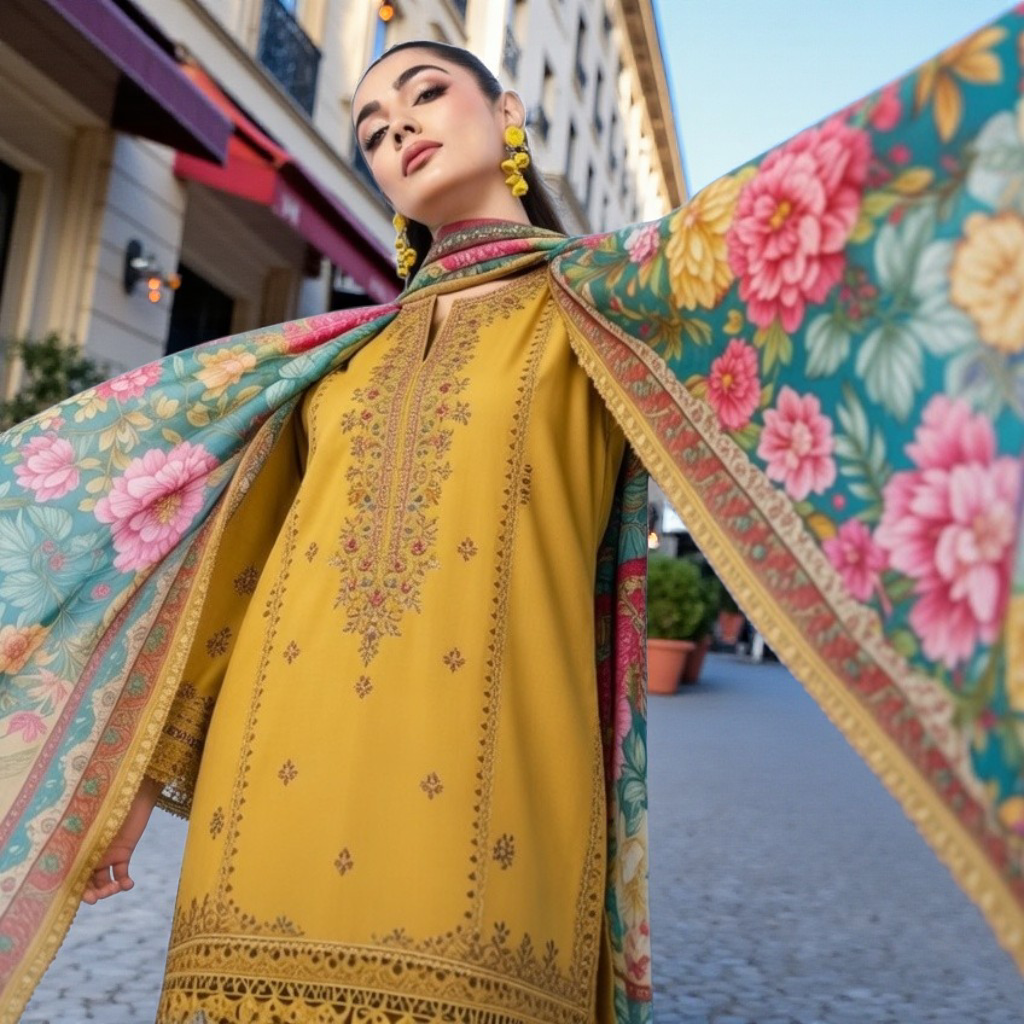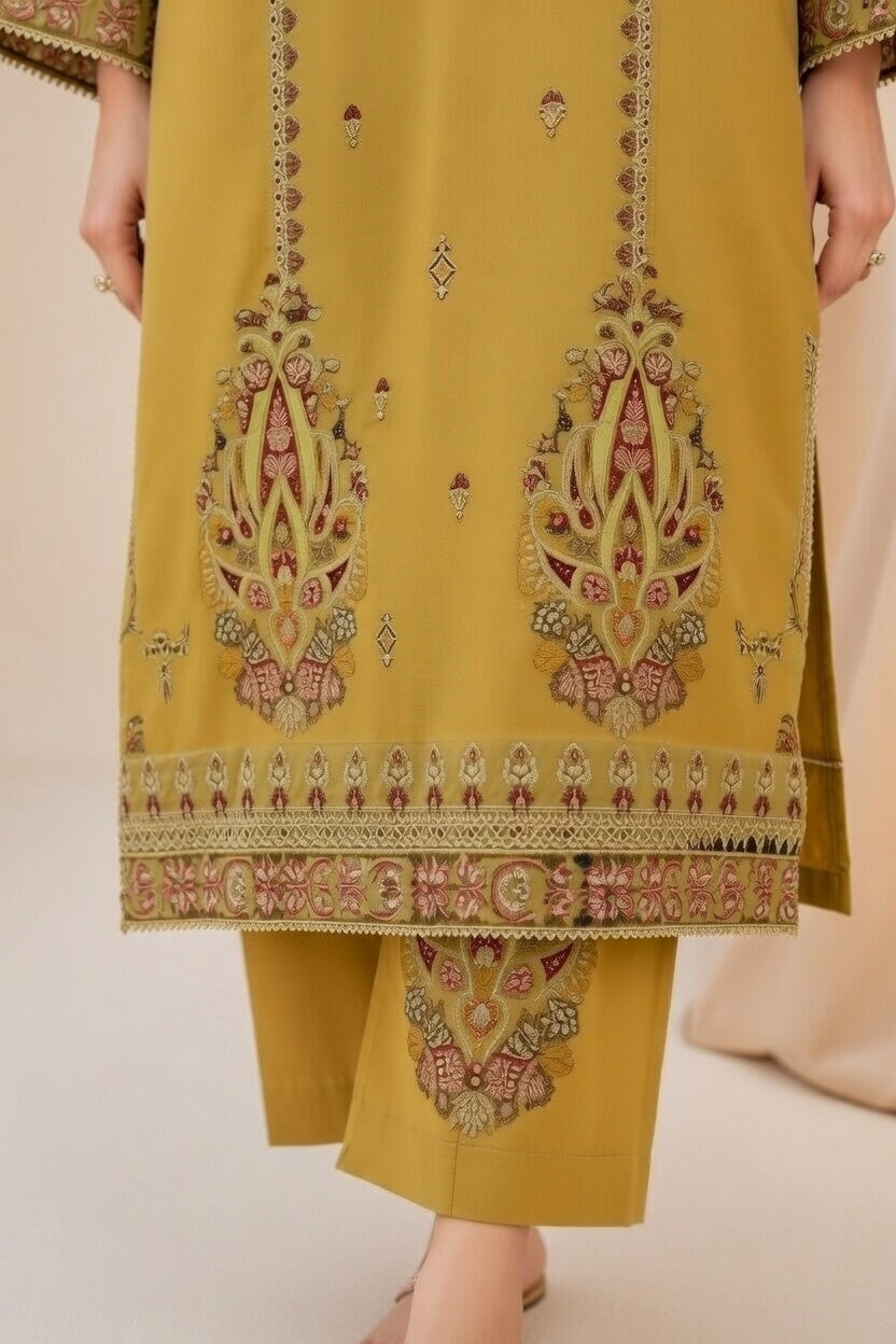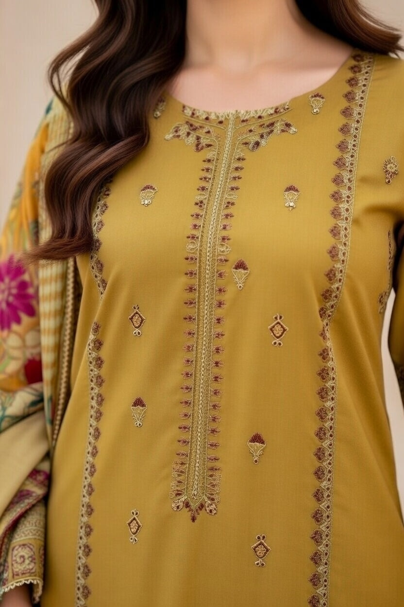 laam Embroidered Dhanak 3PC Lemon laam-44
